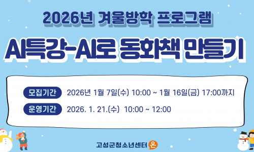 2026년 고성군청소년센터"온" 겨울방학 프로그램 참가자 모집 ![]()