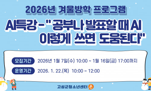 2026년 고성군청소년센터"온" 겨울방학 프로그램 참가자 모집 ![]()
