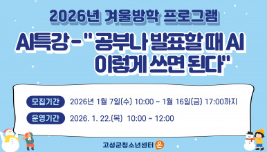 2026년 겨울방학 특강 - < AI특강 Ⅱ - 공부나 발표할 때 AI 이렇게 쓰면 도움된다 >