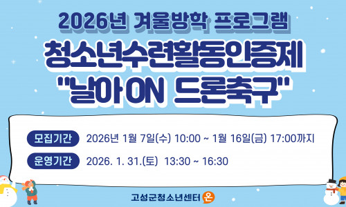 2026년 고성군청소년센터"온" 겨울방학 프로그램 참가자 모집 ![]()